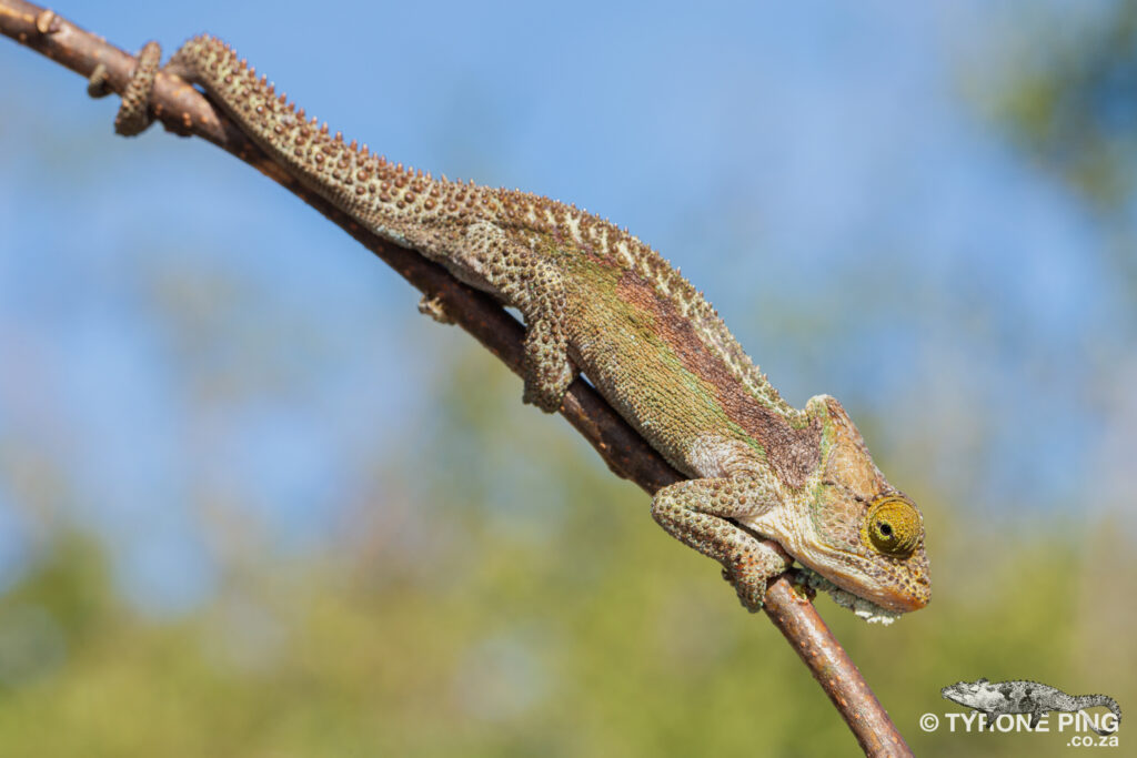 You’re most welcome to email me on contact@tyroneping.co.za – in the Eastern Cape it will most likely be the Eastern Cape Dwarf Chameleon for reference sake: https://www.tyroneping.co.za/chameleons/bradypodion-ventrale/